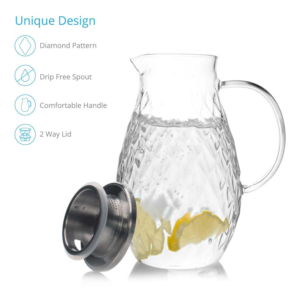 Our glass pitchers are made from borosilicate glass that can hold cold and hot water.